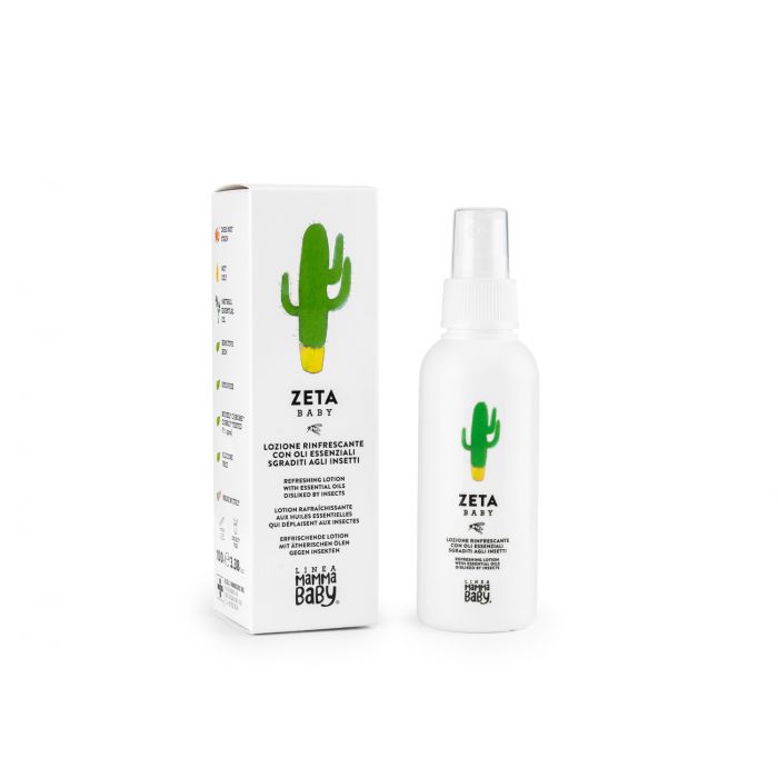 Zeta Baby lozione per viso e corpo, sgradevole agli insetti. Lozione protettiva ed emolliente per pelli sensibili e delicate. La particolare formula con purissimi oli essenziali, sgraditi agli insetti, dona sollievo alla sensazione di fastidio sulla pelle.